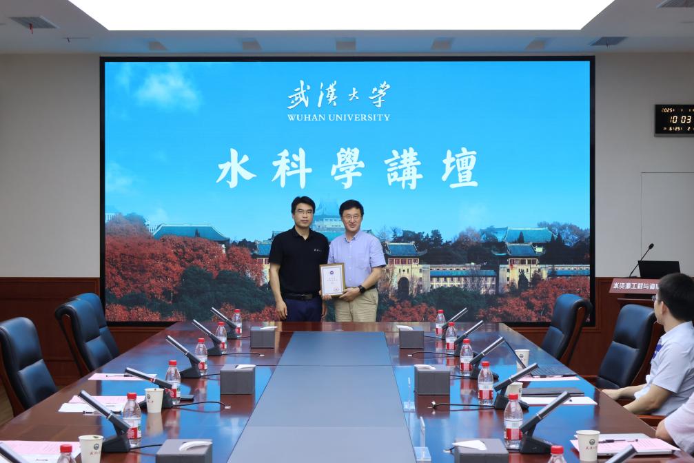 周伟教授授予冯云田教授“武汉大学水科学讲坛”纪念牌