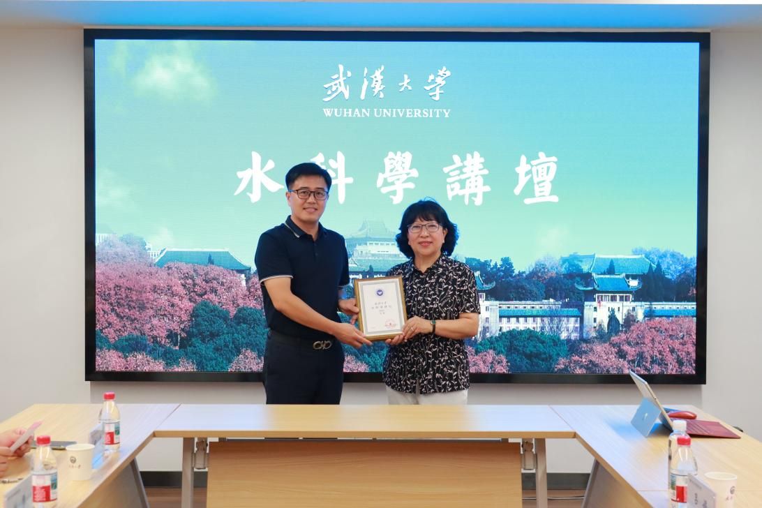 陈杰副主任授予吕娟正高级工程师“武汉大学水科学讲坛”纪念牌
