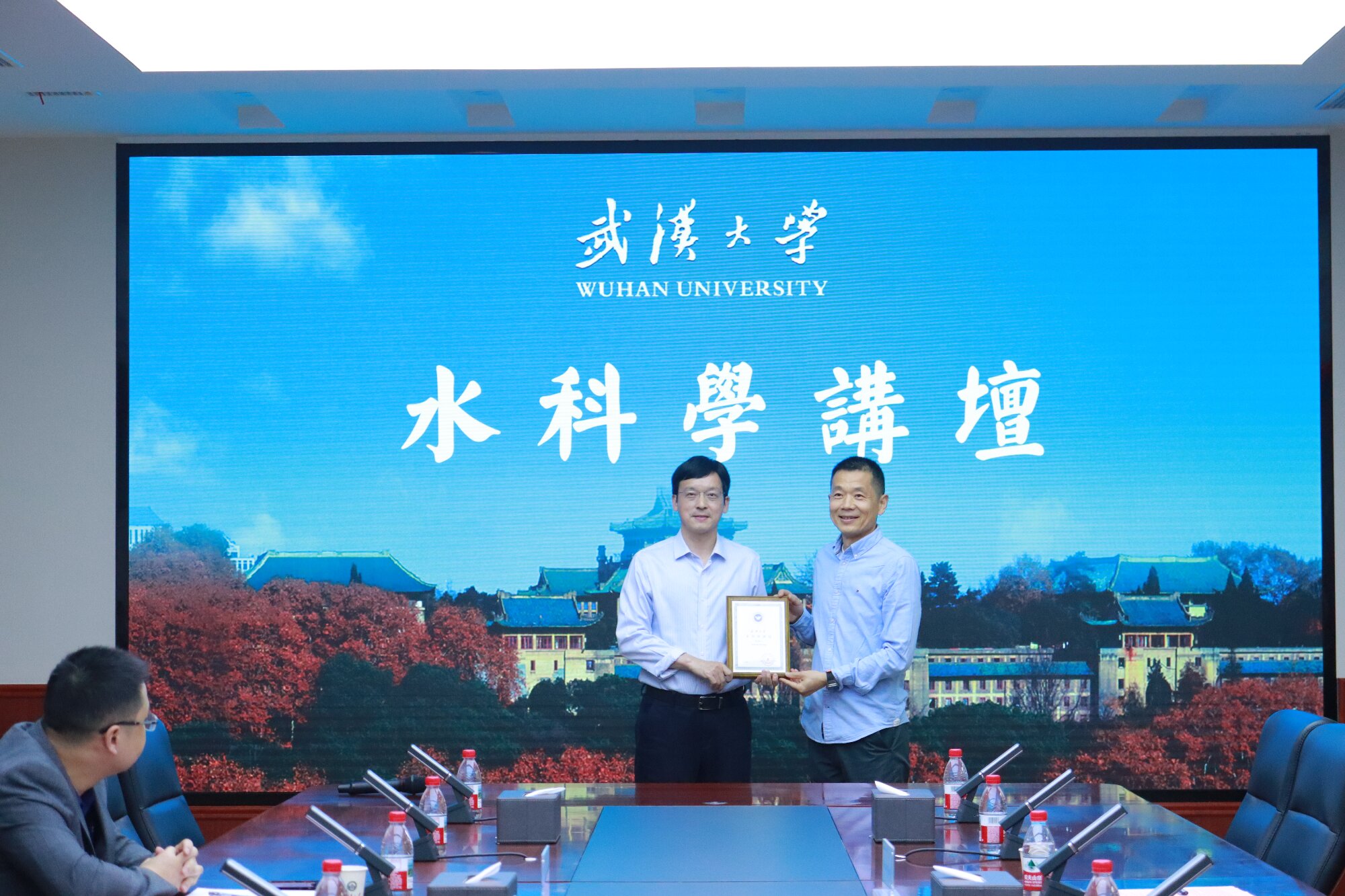 李典庆主任授予Jinsong Huang教授“武汉大学水科学讲坛”纪念牌