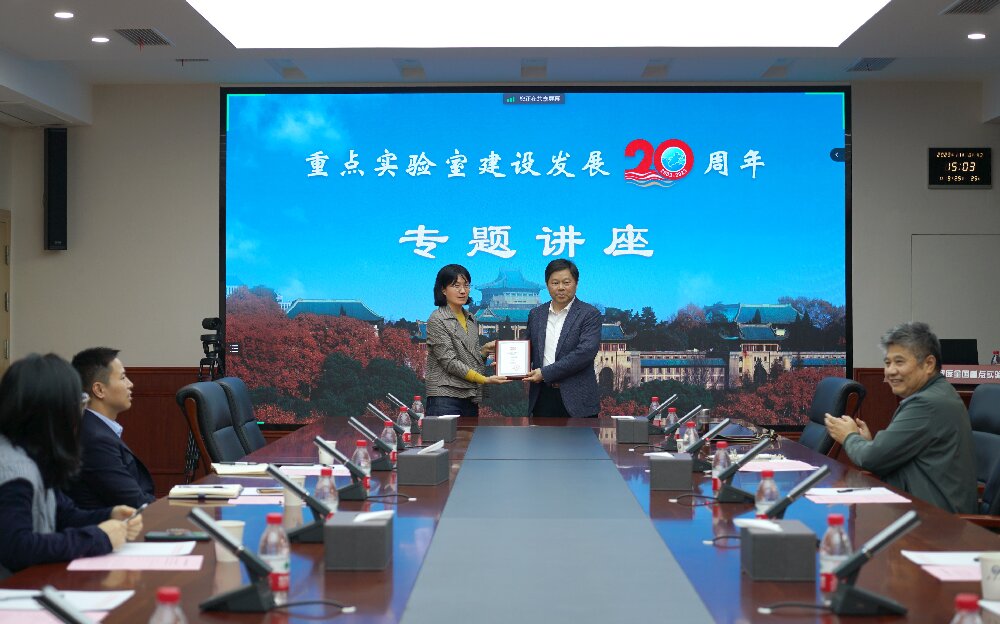 曾玉红副主任授予刘德富教授“重点实验室建设发展20周年专题讲座”纪念牌