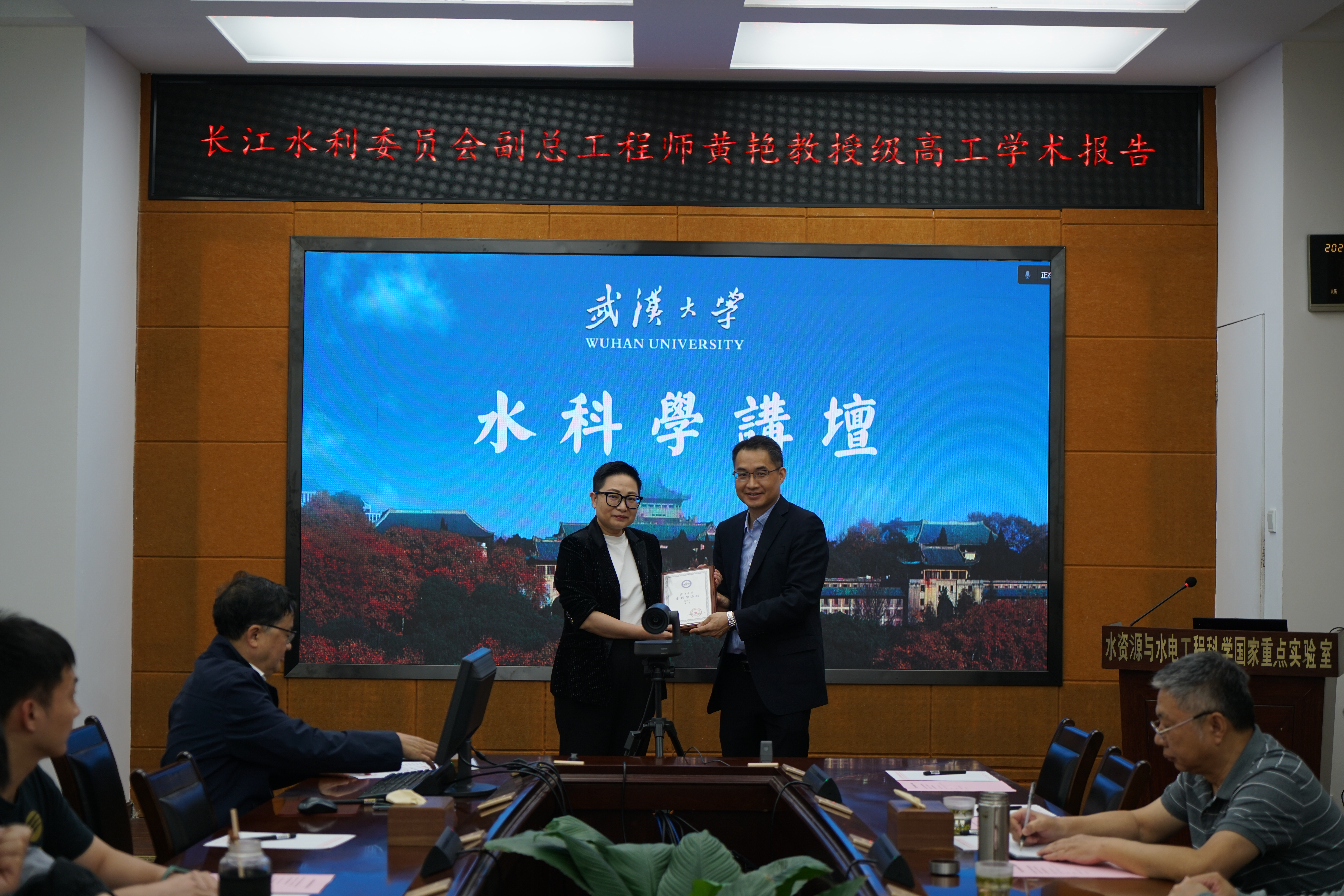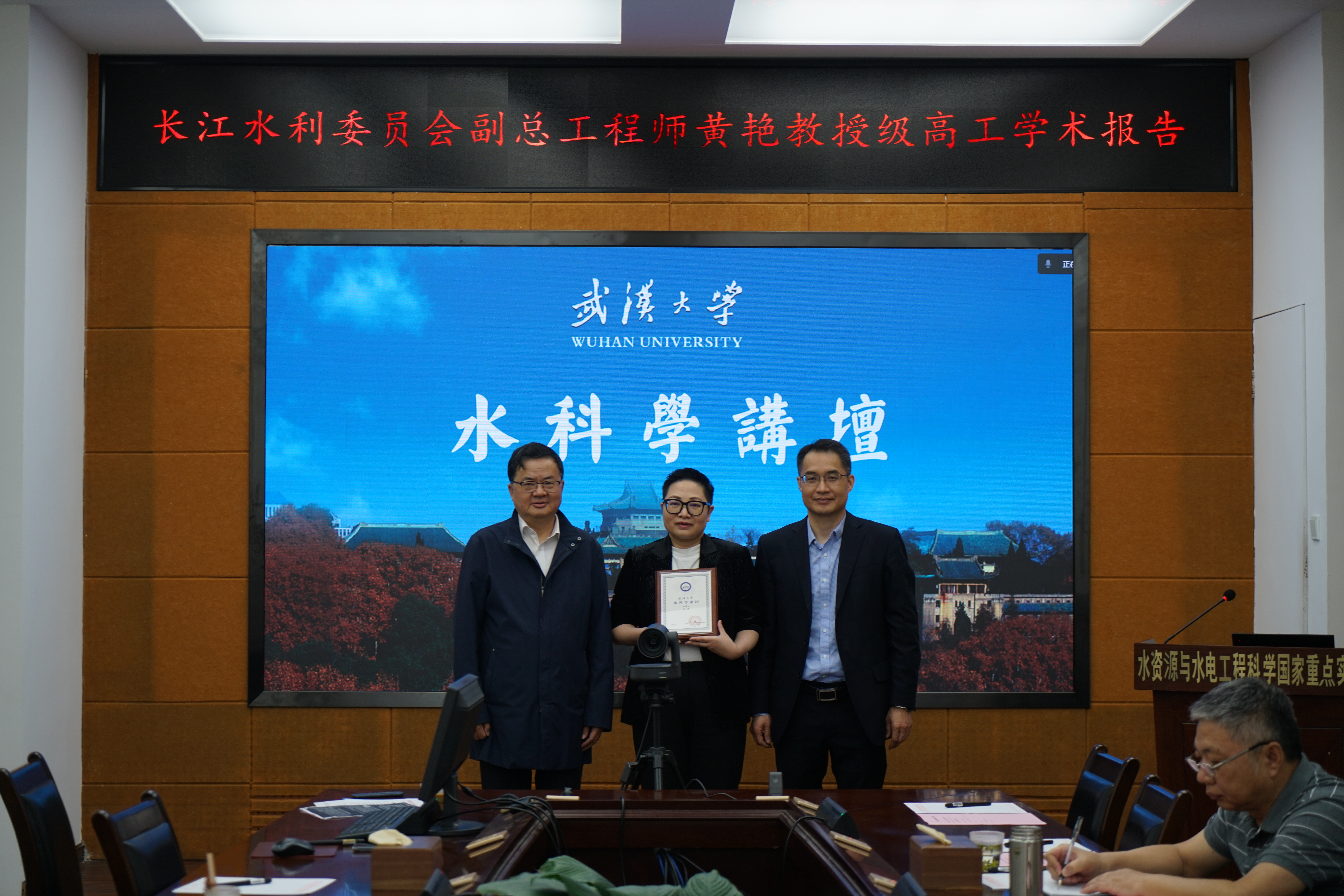 熊立华院长授予黄艳教高“武汉大学水科学讲坛”纪念牌