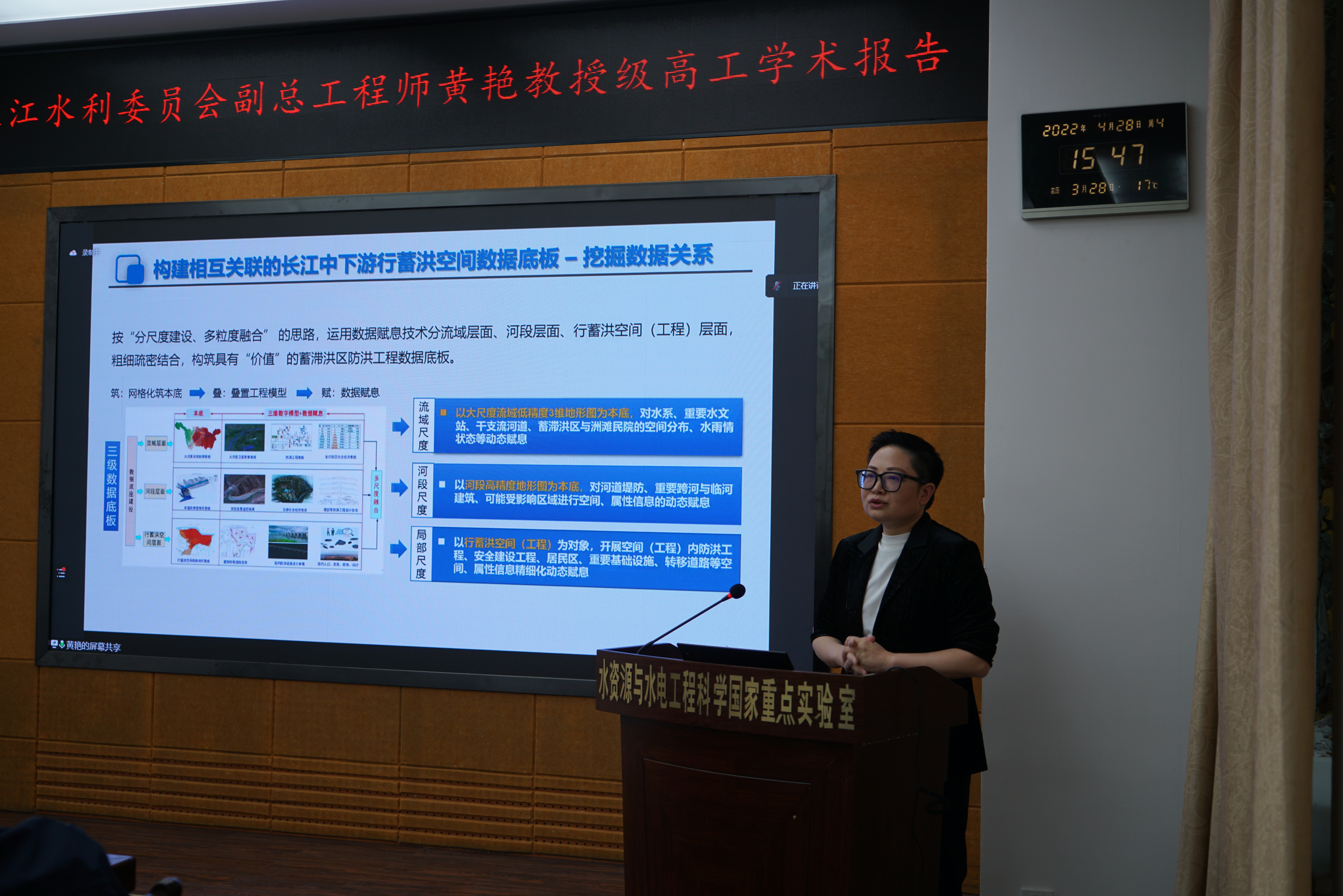 2022年4月28日,应郭生练教授邀请,长江水利委员会副总工程师黄艳教授级高工访问实验室,并做了题为“数字孪生长江建设关键技术探索与实践”的学术报告。