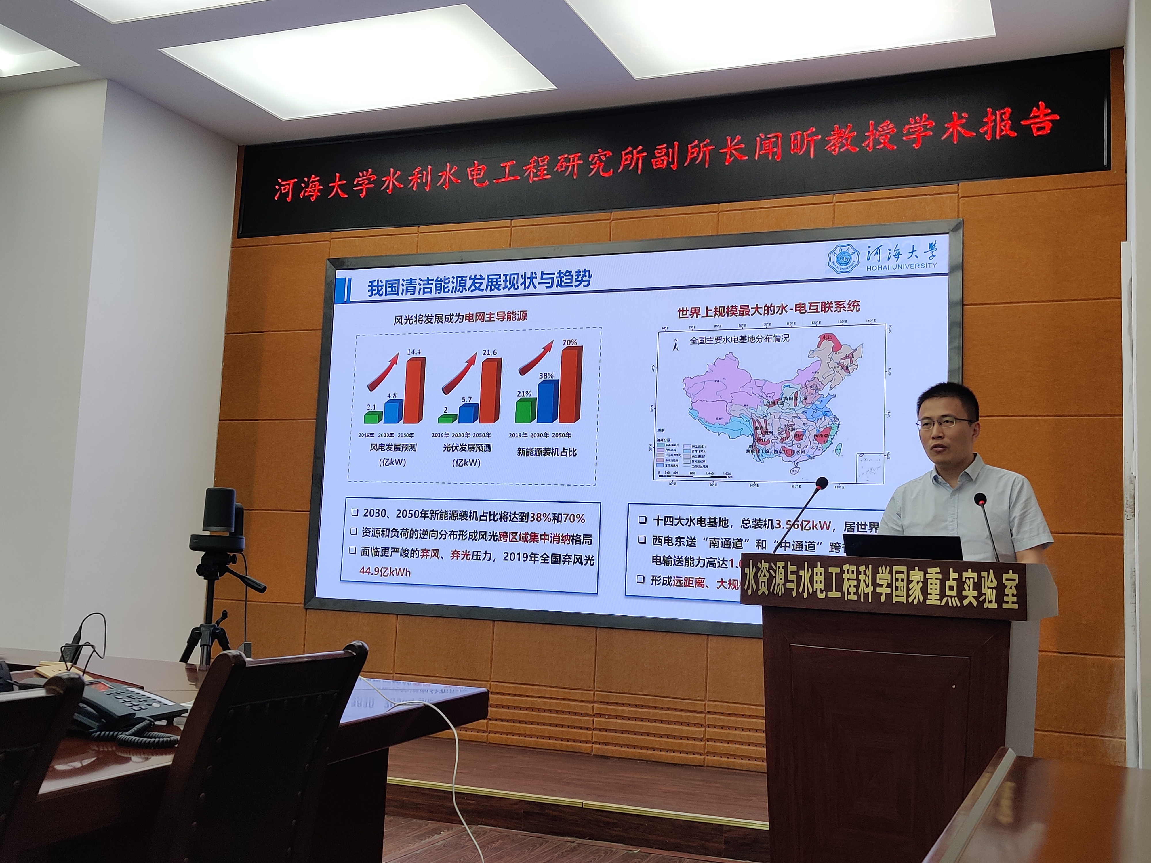 2021年9月28日,应杨威嘉副教授邀请,河海大学水利水电工程研究所副所长闻昕教授访问实验室,并做了题为“水风光多能互补调度运行方式研究及应用”的学术报告。