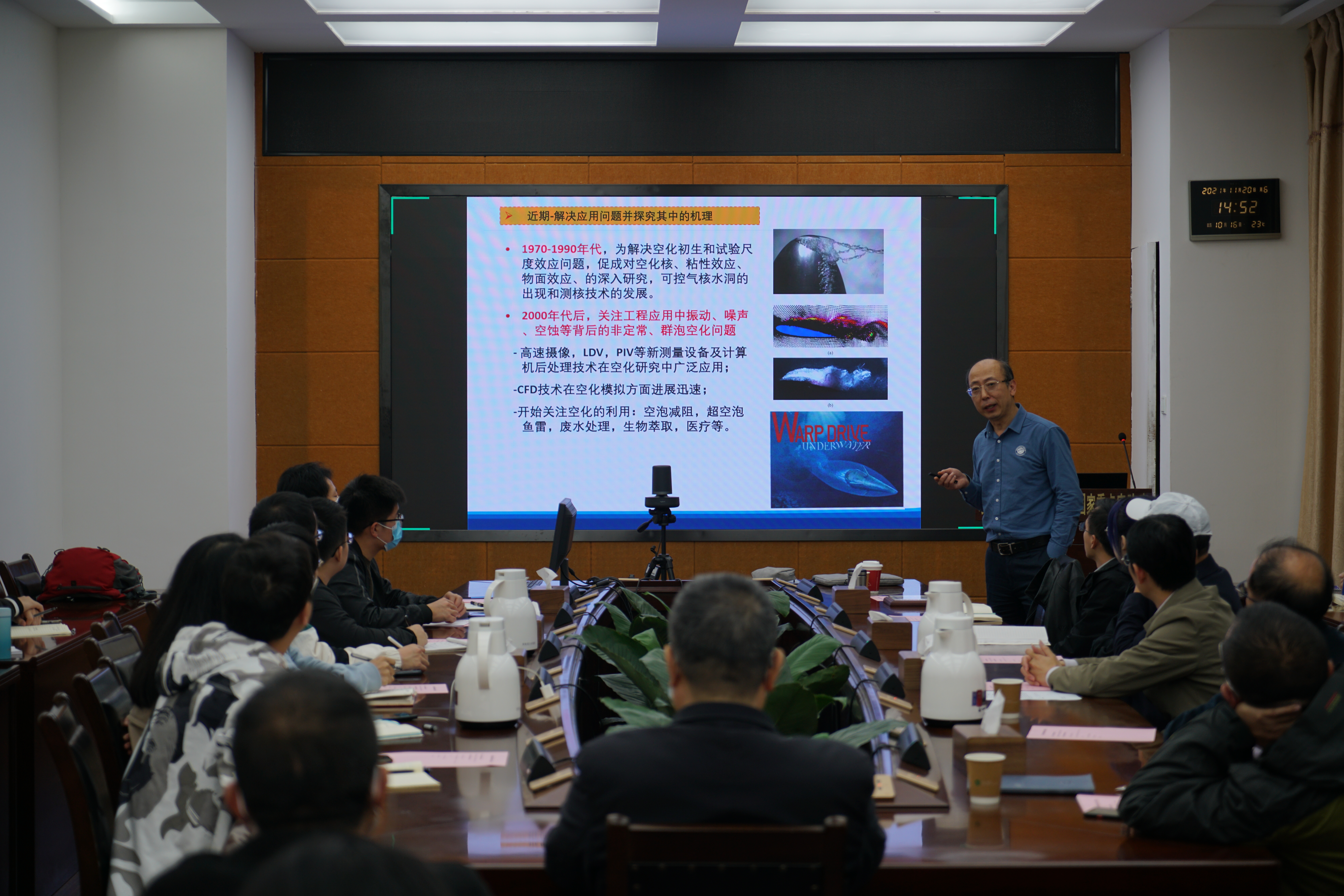2021年11月20日,应季斌教授邀请,中国船舶科学研究中心彭晓星研究员访问实验室,并做了题为“空化机理研究进展与趋势”的学术报告。