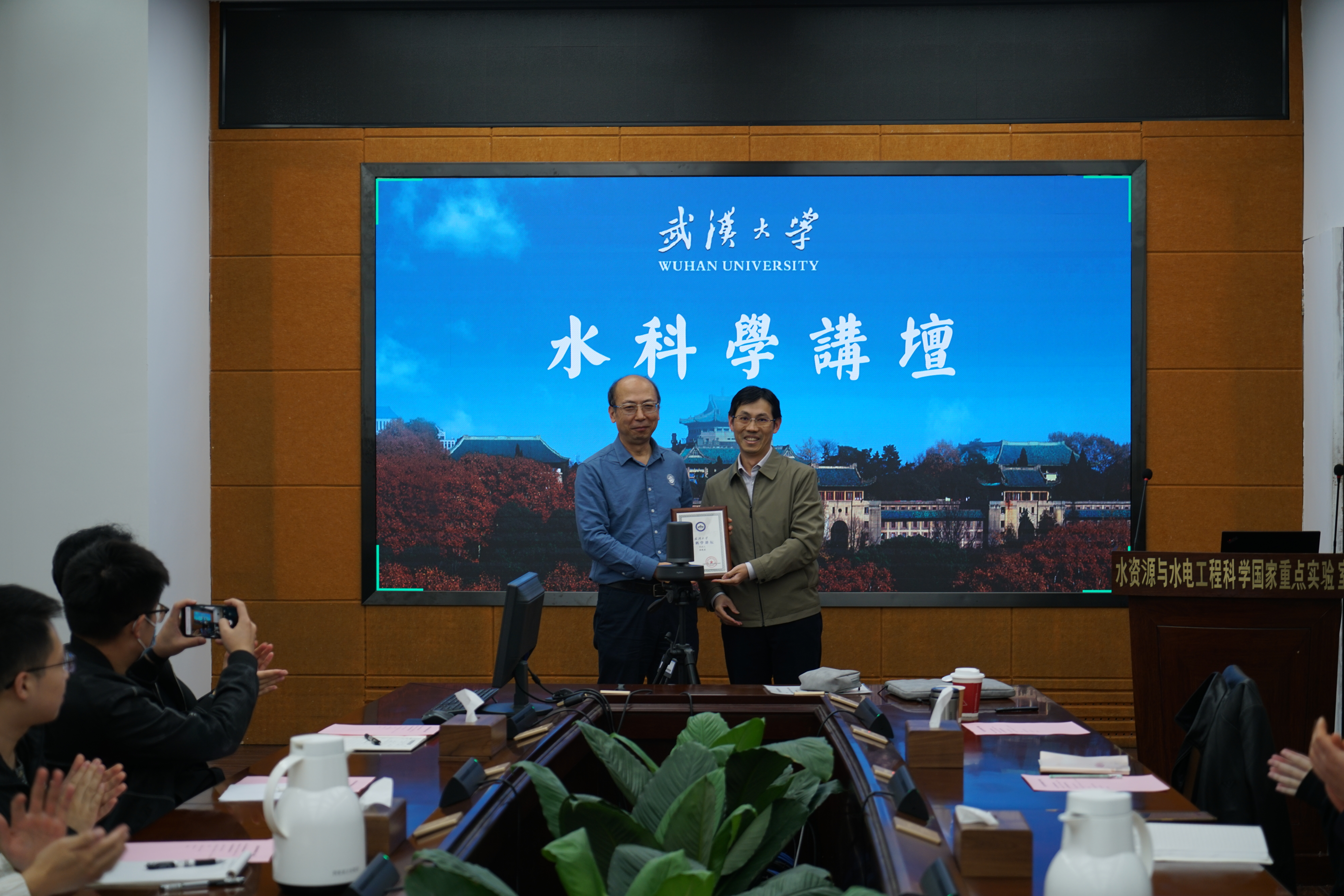 钱忠东副主任授予彭晓星研究员“武汉大学水科学讲坛”纪念牌