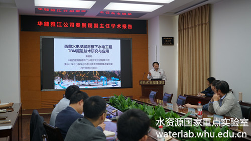 2019年10月23日,应李典庆教授邀请,华能雅江公司秦鹏翔副主任访问实验室,并作了题为“西藏水电发展与雅下水电工程TBM掘进技术研究与应用”的学术报告。