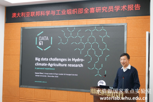 2019年12月27日,应佘敦先副教授邀请,澳大利亚联邦科学与工业组织邵全喜研究员访问实验室,并作了题为“Big data challenges in hydro-climate-Agriculture research”的学术报告。