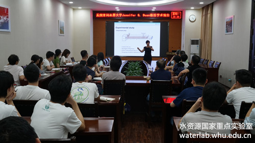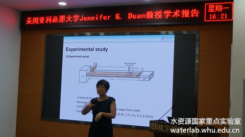 2019年6月10日,应夏军强教授邀请,美国亚利桑那大学Jennifer G. Duan教授访问实验室,并作了题为“Experiment Study and Computational Modeling of Bed Load Particle Transport”的学术报告。