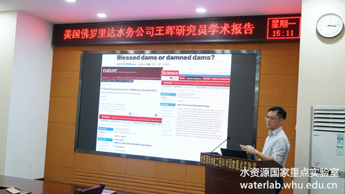 2019年6月24日,应刘攀教授邀请,美国佛罗里达水务公司王晖研究员访问实验室,并作了题为“Application of Climate-information-based Streamflow Forecasts in Sustainable Water Management”的学术报告。