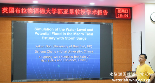 2019年7月14日,应槐文信教授邀请,英国布拉德福德大学郭亚昆教授访问实验室,并作了题为“Numerical Simulation of Hydrodynamics of the Qiantang River Estuary”的学术报告。