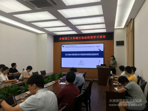2019年9月29日,应苏凯教授邀请,华南理工大学唐欣薇副教授访问实验室,并作了题为“压力输水隧洞复合衬砌结构原型试验研究”的学术报告。