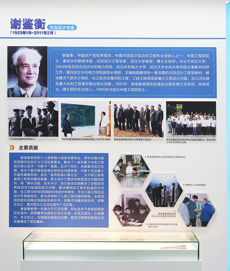 我国河流泥沙及治河工程专业创始人之一,中国工程院院士,主编我国最早的一套完整的河流泥沙工程学教材,解决黄河下游水沙调控、长江防洪及葛洲坝工程、三峡工程等国家重大工程泥沙问题,为江河治理及重大水利工程建设做出突出贡献。近半个世纪,谢鉴衡教授深耕黄河泥沙治理,其关于黄河演变的理论研究及治理思路,为数十年治黄工作提供重要指导;首创“裁弯取直计算方法”,为下荆江系统裁弯工程规划奠定根基;曾主持长江葛洲坝枢纽泥沙问题的研究,用“静水过船、动水冲沙”的方案成功地解决了葛洲坝工程引航道泥沙问题;作为三峡工程论证泥沙专家副组长,参与并领导了三峡工程问题的研究,主持完成的研究成果达到国际先进水平;发展河流模拟新技术,成果在长江、黄河等大江大河治理中广泛应用。