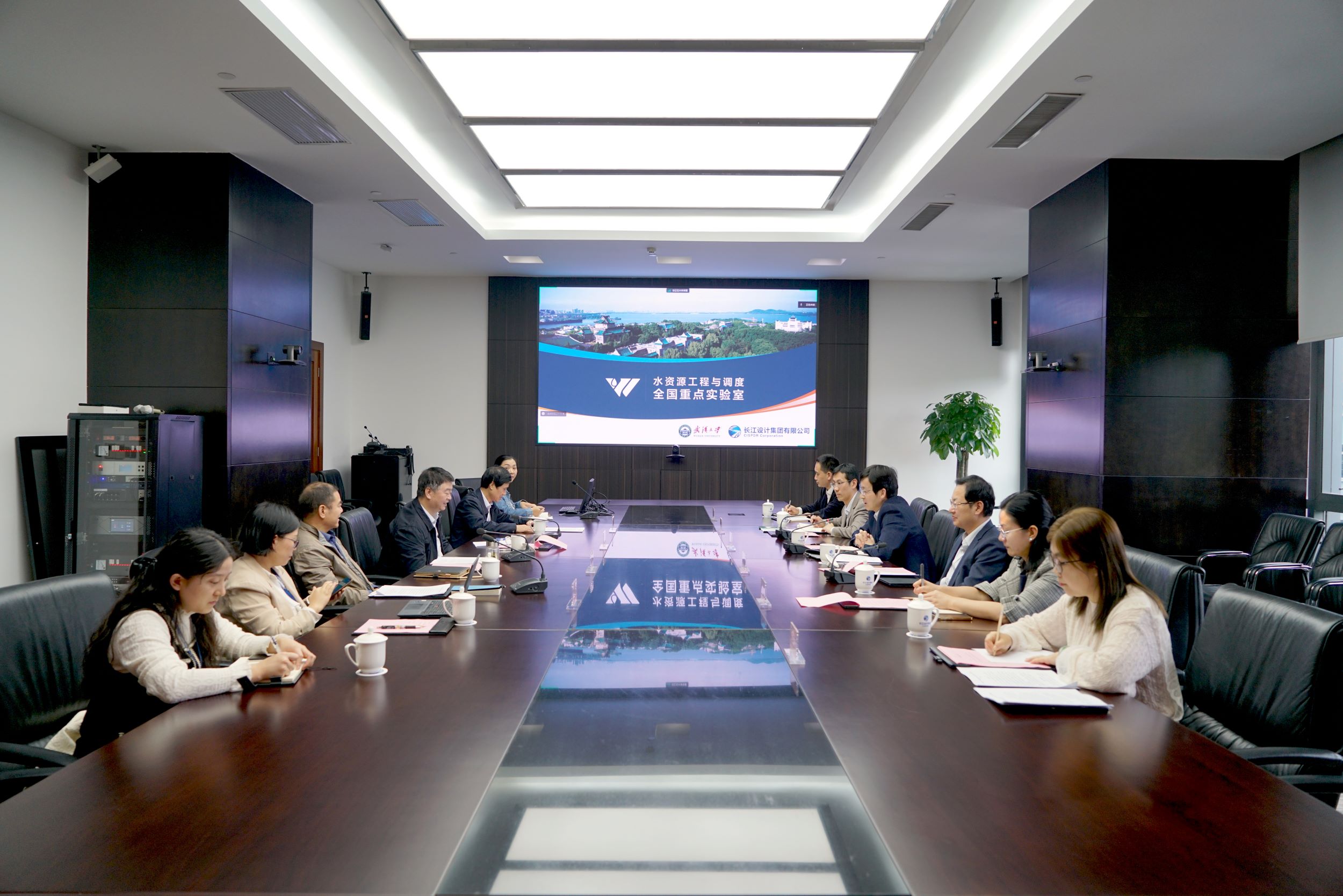 10月12日,水资源工程与调度全国重点实验室主任李典庆,副主任刘攀、钱忠东、曾玉红、蔡瑞一行赴长江设计集团,共商推进全国重点实验室合作共建事宜。长江设计集团总工程师、全国工程勘察设计大师王小毛,集团研发中心主任陈尚法、副主任苏培芳,长江设计公司水利规划院总工丁毅、引调水院副院长颜天佑等参加座谈。