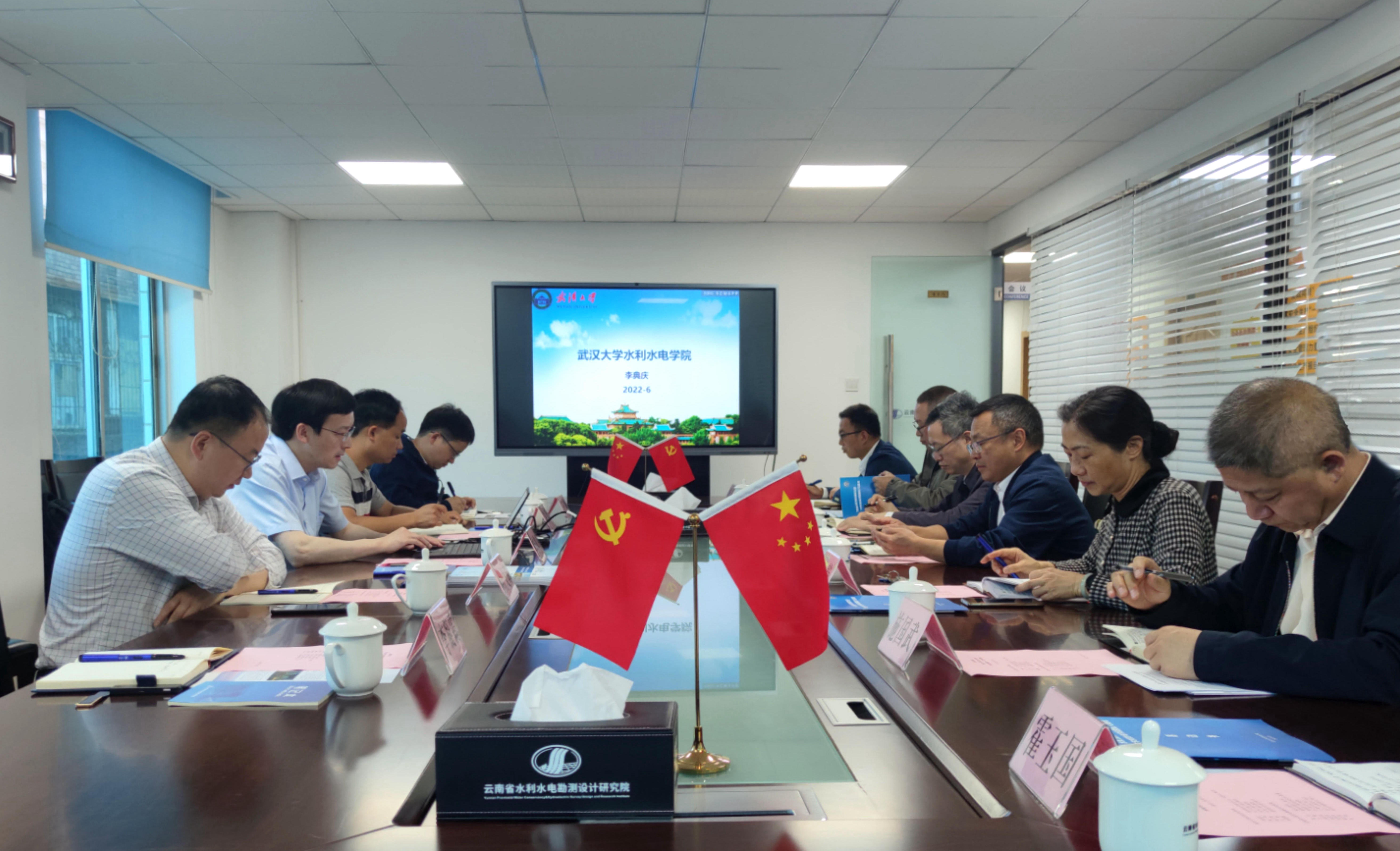 2022年6月9日,水资源与水电工程科学国家重点实验室主任、武汉大学水利水电学院副院长李典庆教授一行到云南省水利水电勘测设计研究院(以下简称云南省院)访问交流,云南省院院长周云、副院长兼总工王静、院副总工顾世祥出席会议。实验室陈明教授、杜文琪教授、王顺教授,云南省院办公室主任施国武、人事处处长陈海春、设计一分院院长霍玉国等参加座谈。