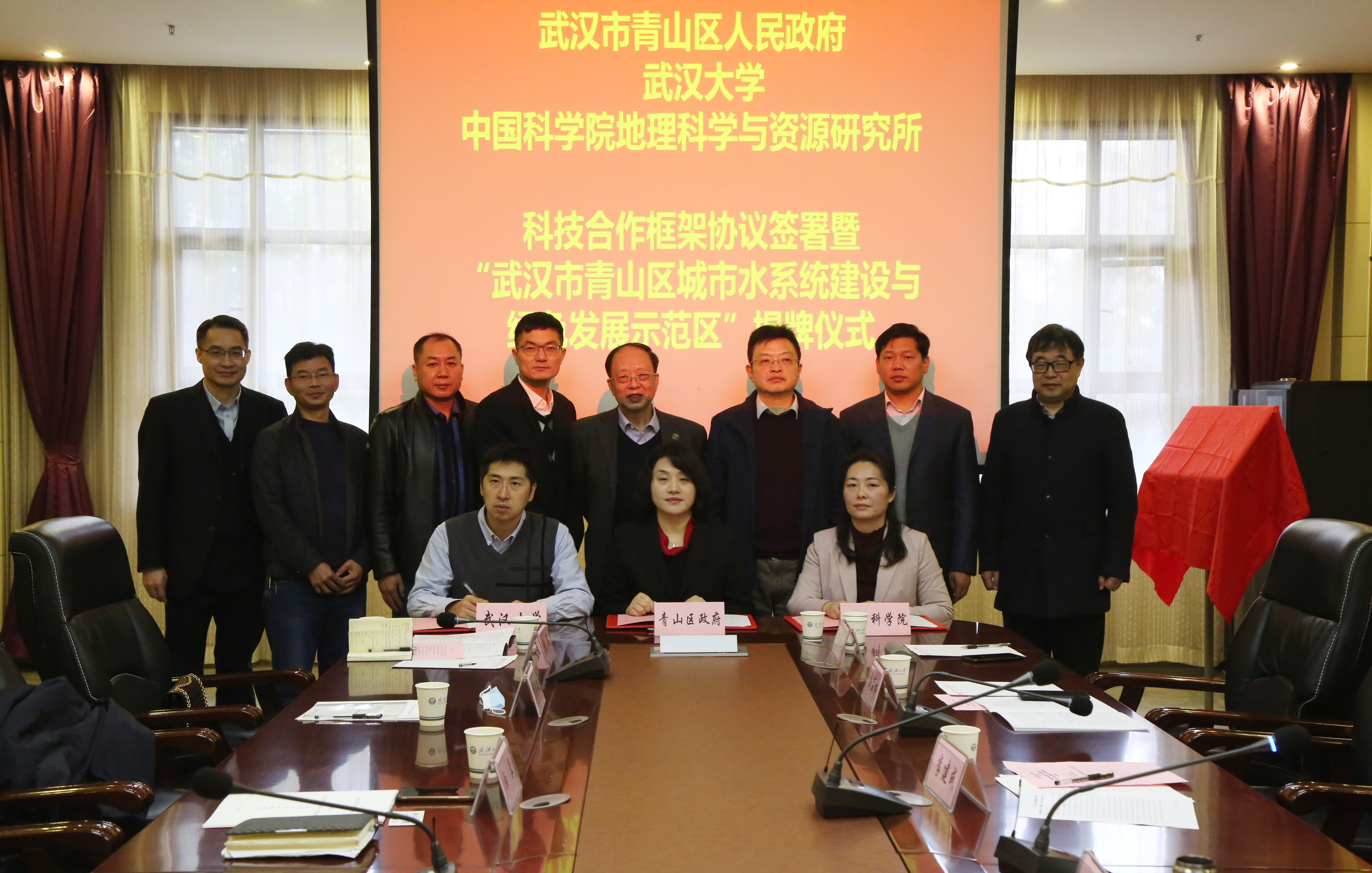 2020年11月24日,由武汉市青山区人民政府、武汉大学、中国科学院地理科学与资源研究所联合建设的“武汉市青山区城市水系统建设与绿色发展示范区”揭牌仪式在武汉大学举行。武汉市青山区副区长骆蓉,中国科学院武汉分院科技处副处长叶昀,中国工程院院士、武汉大学副校长李建成,中国科学院院士、武汉大学水安全研究院院长夏军,武汉大学科学技术发展研究院副院长谷岩松等代表出席了仪式,仪式由水利水电学院院长熊立华主持。
