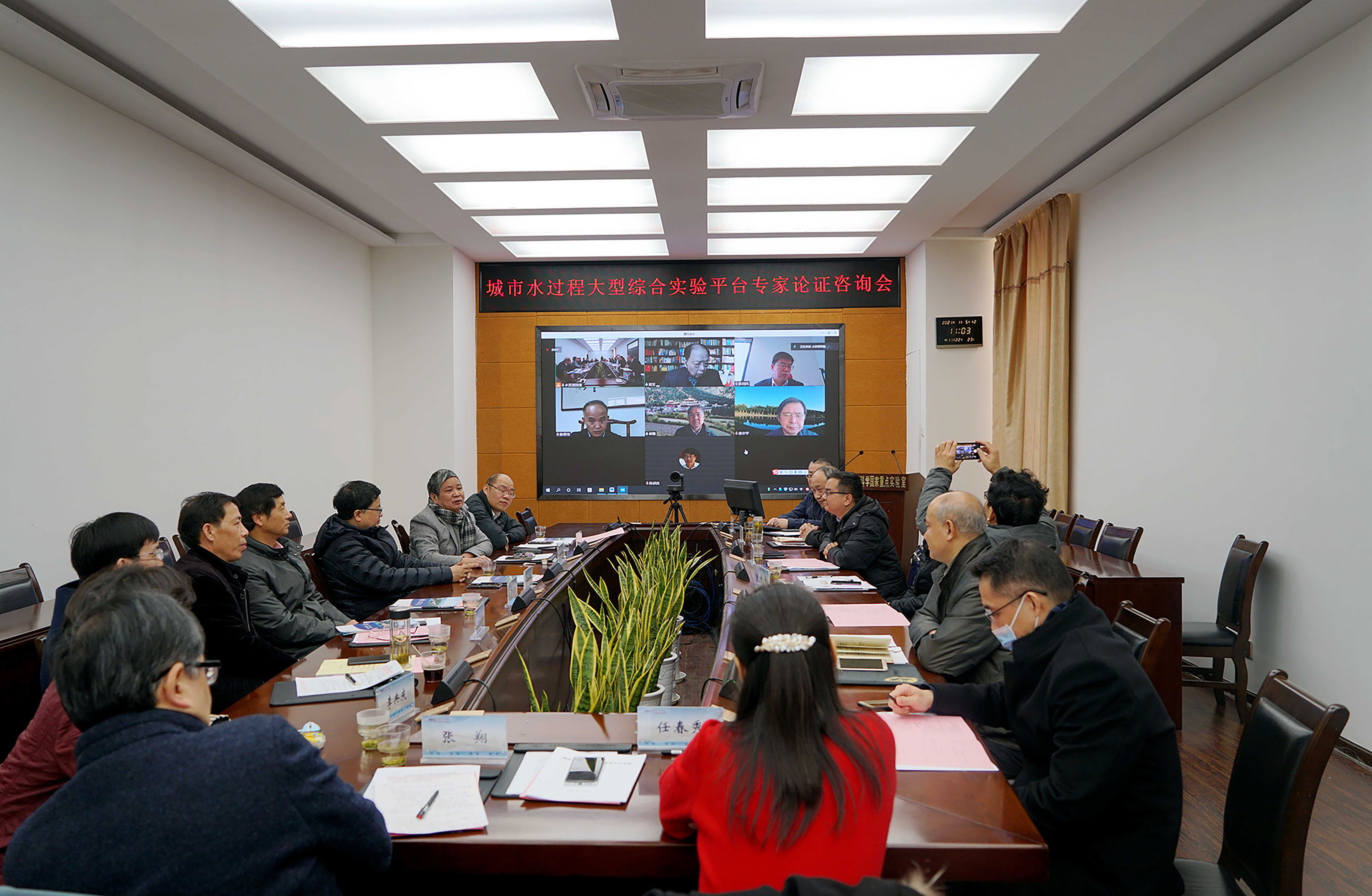 2021年1月5日,武汉大学组织召开了城市水过程大型综合实验平台(以下简称“实验平台”)立项论证会,中科院成都山地灾害与环境研究所崔鹏院士、武汉大学夏军院士、香港科技大学张利民教授、清华大学林斌良教授、北京师范大学徐宗学教授、深圳市水务局陈春浩调研员6位线上专家,以及湖北省科协主席郭生练教授、武汉大学谈广鸣教授、武汉市水务局林济东副总工、武汉碧水集团原董事长丁心红教高、武汉市政工程设计研究院吕锦刚总经理助理5位现场专家对实验平台建设方案进行了论证。武汉大学吴平副校长出席论证会,发展规划与学科建设办公室巫世晶主任、科学技术发展研究院王建波副院长、实验室与设备管理处柯进生副处长、财务部朱钧副部长等相关职能部门负责人以及实验平台建设小组全体成员参会。