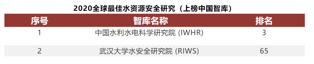 2021年1月28日,国际极具权威性的全球智库评价报告——由美国宾夕法尼亚大学“智库研究项目”(TTCSP)研究编写的《全球智库报告2020》(以下简称“报告”)在全球发布。报告共列出了50个分项榜单,其中由夏军院士担任院长的武汉大学水安全研究院上榜2020全球最佳水资源安全研究智库,是此次入选的水资源领域两家中国智库之一。