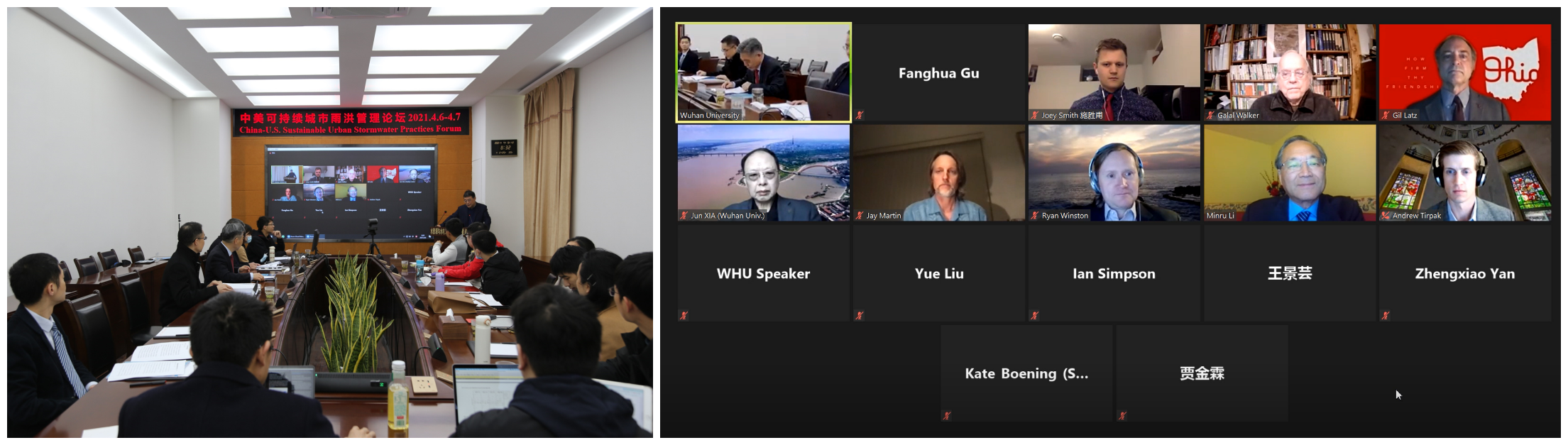 2021年4月6日至7日,由武汉大学和俄亥俄州立大学联合主办的“中美可持续城市雨洪管理论坛”以ZOOM线上会议的形式召开,论坛由武汉大学水资源与水电工程科学国家重点实验室、海绵城市建设水系统科学湖北省重点实验室和俄亥俄州立大学食品、农业与生物工程系联合承办,中国科学院夏军院士、武汉大学唐其柱副校长、国际部桂凌副部长、水利水电学院熊立华院长、夏军强副院长、俄亥俄州立大学Gil Latz副教务长、全美东亚语文资源中心主任Galal Walker教授、Jay Martin教授、Ryan Winston助理教授等领导专家和研究生共30余人参加了论坛。