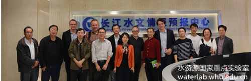 项目一行人进行会议研讨 29号下午,项目组一行到长江水利委员会水文局水文情报预报中心开展了调研与学术交流活动,主要内容包括该单位在水文监测、洪水预报预警的业务运行以及地球观测遥感信息在水文应用等方面,并现场参观与座谈。