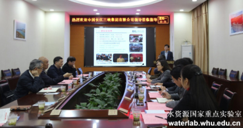 2019年4月29日,中国长江三峡集团有限公司范夏夏副总经理一行7人莅临国家重点实验室参观与指导,武汉大学水利水电学院党委书记程连珍主持座谈会,对范夏夏副总经理一行的到来表示热烈的欢迎,并对长江三峡集团长期以来对学院和国家重点实验室的关心和支持表示衷心的感谢。昆山杜克大学副校长/武汉大学水利水电学院教授常晓林、水资源与水电工程科学国家重点实验室主任李典庆等出席座谈会。