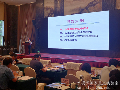 2019年5月24日,长江治理与保护科技创新联盟成立大会暨第一次研讨会在武汉会议中心召开。夏军院士、钮新强院士受邀出席会议作主旨报告。夏军院士在题为“长江大保护水生态安全与绿色发展”的主旨报告中提到“长江流域水生态环境变化及其联系的经济带绿色发展面临着多重影响与挑战”,建议加强长江大保护绿色发展的系统思维、系统治理、系统管控的战略规划,加强长江大保护与绿色发展的科学技术创新与支撑,同时强化长江大保护与绿色发展的法治建设与制度创新。