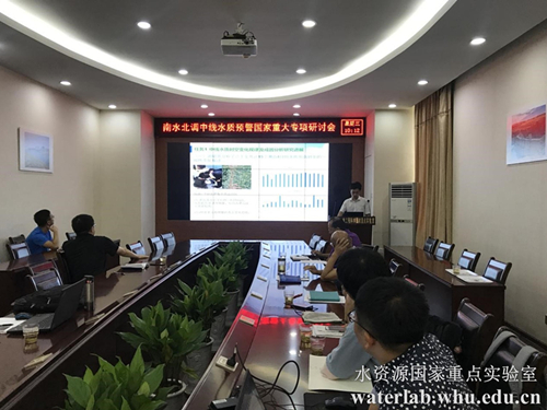 2018年9月19日,国家科技重大专项水专项“南水北调中线水质预测与预警关键技术研究”专题研讨会在武汉大学召开。南水北调中线建管局水质保护中心尚宇鸣主任,水资源与水电工程科学国家重点实验室副主任邵东国教授、钟华教授、数学与统计学院胡宝清教授、计算机学院刘树波教授、长江水利委员会长江科学院靖争高工等专家学者出席了此次研讨会。会议由邵东国教授主持。