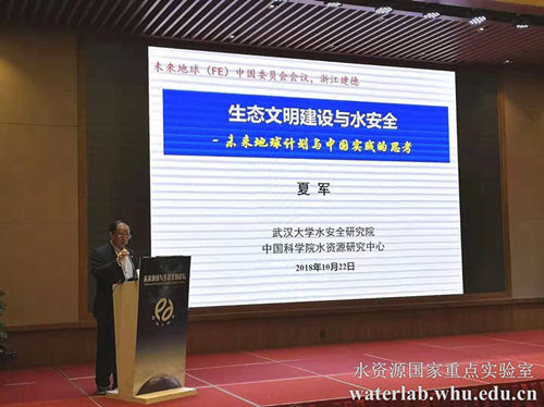 10月22-23日,由未来地球计划中国委员会和建德市政府共同主办,国家气候中心、浙江省气象局协办的未来地球与生态文明论坛在浙江省建德市举行。夏军院士作为未来地球计划中国委员会委员受邀出席该论坛。出席论坛的还有未来地球计划中国委员会主席、中科院院士秦大河,未来地球计划中国委员会副主席、中山大学党委书记陈春声,未来地球计划中国委员会指导委员会委员、科技日报社总编刘亚东,未来地球计划中国委员会副主席、国家发展和改革委员会能源研究所研究员姜克隽,未来地球计划中国委员会副主席、中国社科院城市发展与环境研究所研究员陈迎,未来地球计划中国委员会秘书长、中山大学大气科学学院院长董文杰,未来地球计划中国委员会委员、国家气候中心主任宋连春,浙江省气象局、杭州市气象局以及建德市的相关领导。