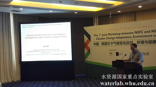 2017年7月5日,重点实验室夏军院士受邀参加了中国-斯里兰卡气候变化应对、环境与健康双边研讨会,该会议由中国国家自然科学基金委员会、斯里兰卡科学基金会资助,由中国科学院生态环境研究中心、中国科学院-发展中国家科学院水与环境卓越中心共同承办。 开幕式上,夏军院士做了题为《Extreme Floods & Droughts and Adaptive Management under Climate Change in China》的大会主题报告,从中国水资源安全问题、变化环境下洪水频率分析、极值干旱变化趋势和水的适应性管理等新研究、国际上水文水资源学科发展前沿等方面分享了自己的研究成果,并重点阐述了适应性管理中关于适应性能力与适应性方式、手段等方面的问题,为斯里兰卡在解决相应水灾害问题提供了借鉴;同时号召中斯双方科学家在中国“一带一路”倡议下积极开展科学合作。