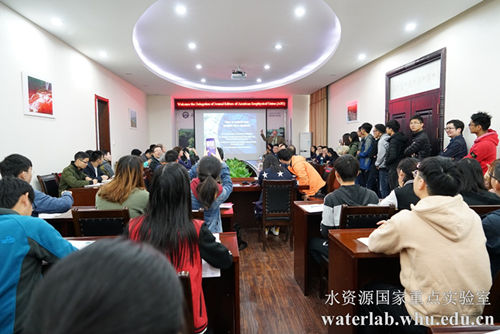 2017年10月19日,美国地球物理学会(AGU)期刊主编代表团一行6人与实验室师生面对面交流会在实验室学术报告厅举行,副院长、实验室副主任熊立华主持见面会。会后,谈广鸣常务副校长和李斐副校长接见了代表团一行。