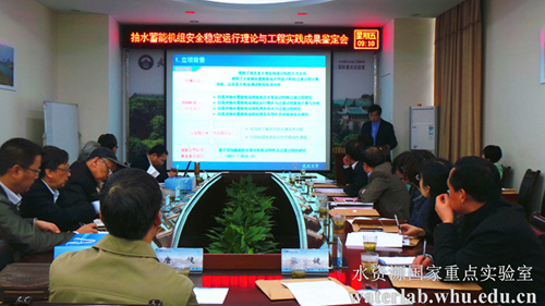 2015年4月3日,湖北省科技厅在武汉组织召开了由武汉大学、河海大学、白莲河抽水蓄能有限公司共同完成的“抽水蓄能机组安全稳定运行理论与工程实践”科技成果鉴定会。华中科技大学张勇传院士、长江勘测规划设计研究院钮新强院士、水利部长江水利委员会郑守仁院士等7名知名专家学者组成了鉴定委员会。湖北省科技厅副厅长郑春白、武汉大学副校长李斐、科学技术发展研究院副院长何莲等领导出席了鉴定会,杨建东教授代表课题组汇报了研究成果。