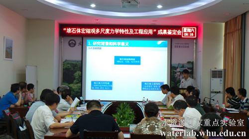 2015年6月27日,教育部在武汉组织召开了由武汉大学、清华大学、河海大学共同完成的“面板坝堆石料宏细观力学特性及工程应用”科技成果鉴定会。华能澜沧江水电股份有限公司马洪琪院士、华中科技大学张勇传院士等7名知名专家学者组成了鉴定委员会。武汉大学副校长谈广鸣、科学技术发展研究院院长李平湘、副院长何莲等领导出席了鉴定会,周伟教授代表课题组汇报了研究成果。