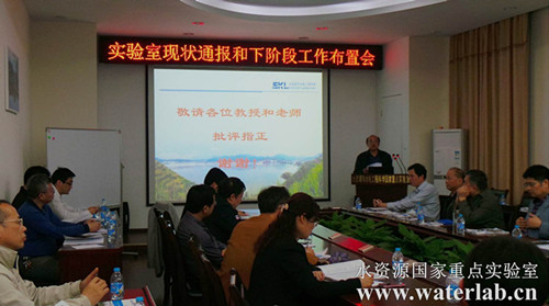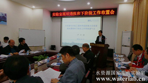 2014年4月11日下午,实验室现状通报和下阶段工作布置会在重点实验室学术报告厅召开。会议由实验室主任卢文波主持,实验室副主任邵东国、熊立华、实验室全体固定、流动人员及学院部分青年教师55人参加大会。