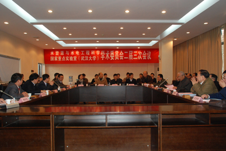 2010年12月11日,水资源与水电工程科学国家重点实验室(武汉大学)学术委员会二届二次会议在实验室学术报告厅召开。学术委员会主任郑守仁院士主持了会议,武汉大学黄泰岩副校长到会并致词,实验室主任谈广鸣教授向学术委员会作了实验室工作报告。学术委员会委员听取并审议了实验室工作报告,审定了申请资助的实验室开放课题。